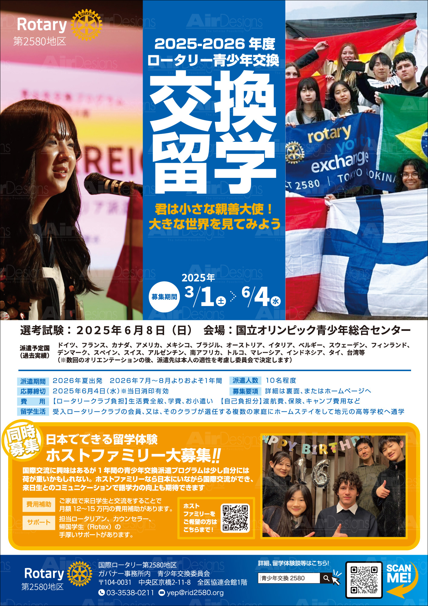 国際ロータリー第2580地区様-交換留学募集A2ポスター&A4フライヤー